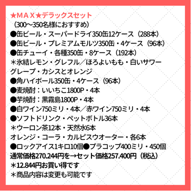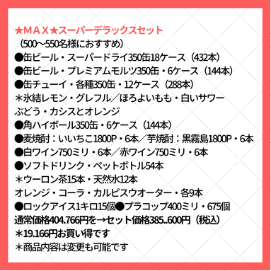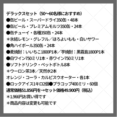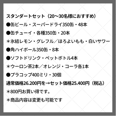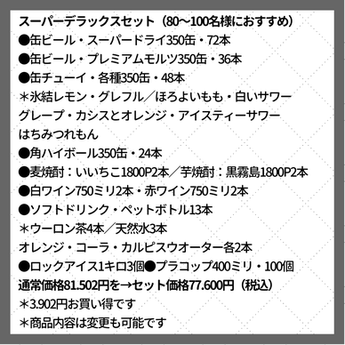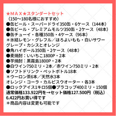 各種イベントにピッタリのビール・お酒・チューハイ・ワイン・各種飲料等、バラエティ豊かに取り揃えております。